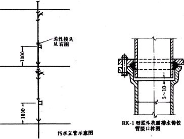 3.5.6高層建筑考慮管道脹縮補償,可采用法蘭柔性管件(圖1-8),但在承插口處要留出脹縮補償余量。
