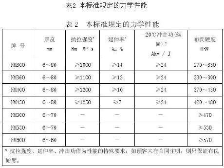 本標準中的牌號分為NM300、NM360、NM400、NM450、NM500、NM550和NM600六個級別,能夠適應用戶的需求。