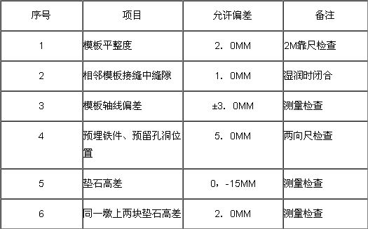 2.模板支撐尺寸誤差±3.0MM,模板中心誤差±10MM,截面尺寸準確無誤。
