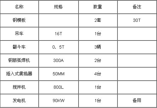 。4)運輸設備、拌合機具、起重設備、振搗設備準備齊全。