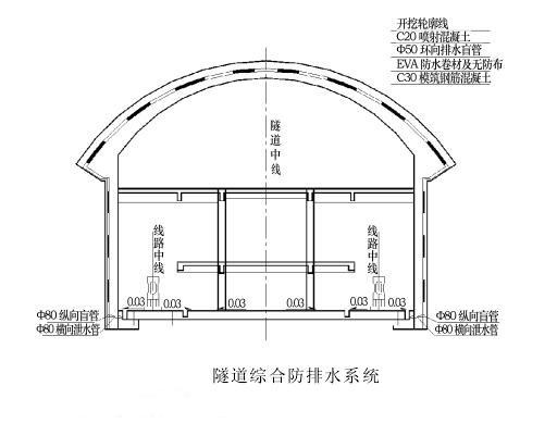 大坪隧道綜合防排水系統(tǒng)按“以排為主、防、排、堵相結(jié)合”的原則進行設(shè)計如下圖。