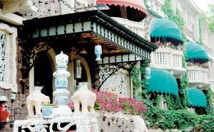 漫步“五大道”(馬場道、睦南道、大理道、常德道、重慶道),道路兩旁一幢幢造型獨特的歐陸風(fēng)格建筑,給人帶來濃郁的異國情調(diào)。因此,這里被譽為“萬國建筑博覽會”。“五大道”地區(qū)是天津名人舊居最為集中的地區(qū),游覽“五大道”,看看“小洋樓”,實際上是一次漫步建筑藝術(shù)長廊的趣味旅行。這里的“小洋樓”建筑大都建于20世紀(jì)20~30年代,匯聚了英、法、意、德、西班牙等國各式建筑風(fēng)貌,有文藝復(fù)興式、希臘式、哥德式、浪漫主義、折衷主義以及中西合璧式等。像睦南道上的孫殿英舊宅,建于1930年,為三層帶地下室的西洋古典公館,頗為豪華氣派;隔壁的舊居是中國近代外交家顏惠慶舊居,建筑具有歐洲古典建筑風(fēng)格;張學(xué)良二弟張學(xué)銘舊居,紅磚清水墻,坡瓦頂,具有英國庭院別墅風(fēng)格。“五大道”上還有很多公寓式住宅,像常德道上的茂根大樓、睦南道上的香港大樓、重慶道上的劍橋大樓、長沙路上的民園大樓和河北路上的林東大樓。里弄式住宅也很有特點,比如馬場道上的安樂村、成都道上的生甡里、常德道上的民園西里、河北路上的先農(nóng)大院和疙瘩樓。特別值得一提的是河北路上的“疙瘩樓”,它為英商先農(nóng)公司1937年建造,由意大利建筑師鮑乃弟設(shè)計,因外檐墻面選用帶“疙瘩”的硫缸磚作點綴,故稱“疙瘩樓”,F(xiàn)在的“疙瘩樓”還是私人博物館(餐館),顧客可以邊就餐邊觀賞文物。馮驥才給它題詞“能吃的博物館”。館內(nèi)陳列的展品有西周至清代典型的青銅器、銅器、木雕、石器、老門窗、彩繪木人、煙具、屏風(fēng)、座鐘、桌椅、木箱、提盒、老鐵等。它的石頭酒吧屬中西合璧式格調(diào),陳列有北齊、北魏、宋元明清等朝代的300余塊石頭,其數(shù)量和質(zhì)量在全國乃至全世界都屬一流。