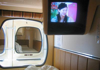 7. 日本東京膠囊賓館(Capsule Hotel):這種賓館是幾十個整齊撂起來的“膠囊”。每個膠囊“盛放”一個顧客。房間大小約為2米×1米×1.25米,內(nèi)有電視,并提供保護客人隱私的木制百葉窗和隔音耳塞。