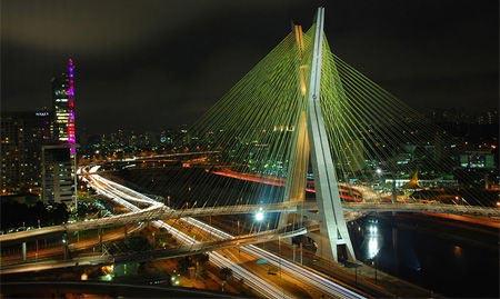 巴西圣保羅奧利韋爾懸索大橋于2008年5月開始投入使用,這座橋高138米,是世界首座X型雙道索橋,它的獨(dú)特之處在于兩條呈X型交叉的橋身和一座X型的支撐吊塔,它的建成通車大大縮短了松林河濱大道到圣保羅市南區(qū)的距離。
