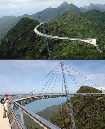 這座壯美的大橋位于馬來西亞的蘭卡威群島,建成于2004年10月,主體由鋼材料構(gòu)成,橋型呈圓弧狀,可使游客從不同的角度飽覽安達(dá)曼海和泰國塔如濤島的美麗風(fēng)景。這座橋因?yàn)殡x地面高而且很窄,穿越它是一項(xiàng)極具挑戰(zhàn)性的任務(wù),從而吸引了很多愛好冒險(xiǎn)的游客慕名前來。
