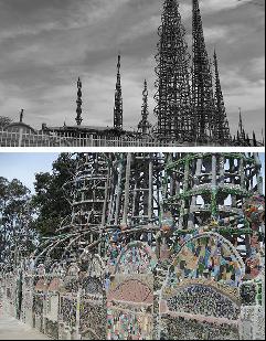 華茲塔位于美國洛杉磯,是一位叫做西蒙·羅迪阿的意大利移民,從1921年到1955年,花了30多年的時(shí)間斷斷續(xù)續(xù)所筑成的。塔內(nèi)有涼亭、噴泉以及其它配套的建筑,高達(dá)100英尺。建筑材料由貝殼、廢金屬、陶器碎片、石頭和玻璃等,這些幾乎都是他隨意找到的材料?偟膩碚f,他用鋼鐵、水泥、砂漿和絲網(wǎng)等,在沒有使用腳手架的情況下,創(chuàng)造性的把華茲塔展現(xiàn)在了人們的眼前。這座摩天建筑結(jié)構(gòu)獨(dú)特,壯麗雄偉,令人贊嘆。華茲塔已被列為聯(lián)合國國家歷史地標(biāo),這座標(biāo)志性建筑充滿著震撼力,每年都有成千上萬的人到此參觀。不論從哪一方面來看,這座塔都可以說是超越了絕對建筑法則而存在的藝術(shù)作品。
