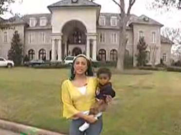 麥蒂的妻子抱著孩子介紹他們的豪宅