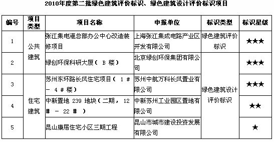 關于2010年度第二批綠色建筑評價標識、綠色建筑設計評價標識項目的公告