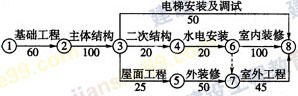 3.上述施工網(wǎng)絡(luò)計劃中,電梯安裝及調(diào)試工作的總時差為( ?。┨?。