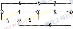 5.上述網(wǎng)絡(luò)計(jì)劃中,E工作的自由時(shí)差TF2-5為( ?。┨臁?br /> A.6