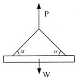 2.如圖所示,用吊索起吊重為W的構(gòu)件,兩斜索與構(gòu)件所成的角度為ɑ,吊點(diǎn)對(duì)稱,則斜索內(nèi)力最大時(shí)的角度ɑ為( ?。?。