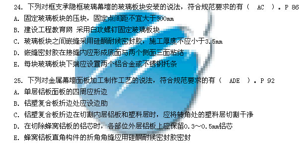 18.采用玻璃肋支承的點支承玻璃幕墻,其玻璃肋應是( D )。P 88