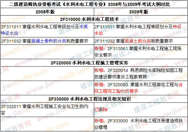 2009年二級建造師新版教材和大綱已于3月5日由建工社統(tǒng)一發(fā)往各地書店,在之前的建工社發(fā)布的內(nèi)容變化信息里,提到的內(nèi)容變化在10%左右,但是當(dāng)建設(shè)工程教育網(wǎng)的老師拿到教材和大綱之后,發(fā)現(xiàn)實際調(diào)整變動比較大,為了能讓廣大考生對09年二級建造師考試內(nèi)容變動情況有一個全面的了解及認識,建設(shè)工程教育網(wǎng)教務(wù)人員及時作出相關(guān)變動說明,望廣大學(xué)員及時參考并做好2009年學(xué)習(xí)準備。建設(shè)工程教育網(wǎng)原創(chuàng)