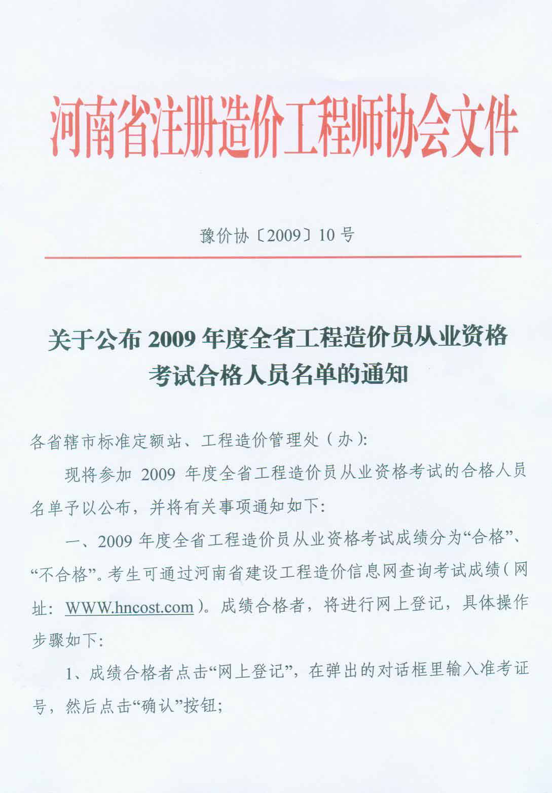 河南省09年全省工程造價員從業(yè)資格考試合格人員名單的通知