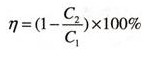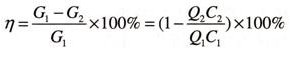 除塵器的全效率是指在同一時(shí)間內(nèi)除塵器捕集的粉塵質(zhì)量占進(jìn)入除塵器的粉塵質(zhì)量的百分?jǐn)?shù),用η表示。根據(jù)除塵效率的定義,除塵效率表示式為: