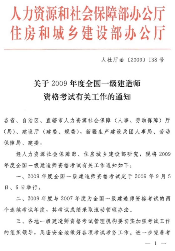 經(jīng)人力資源社會(huì)保障部、住房城鄉(xiāng)建設(shè)部研究,現(xiàn)將2009年度全國(guó)一級(jí)建造師資格考試有關(guān)工作通知如下: