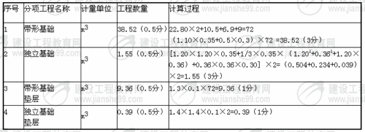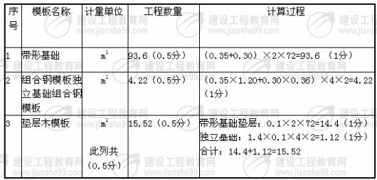 。1)“工程內(nèi)容”和“單位”兩項(xiàng)合并得0.5分,錯一處即不得分。