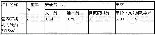 項(xiàng)目名稱:電氣配線,管內(nèi)穿線BV16mm2(0.5分),綜合單價(jià):10.62元(2.5分)