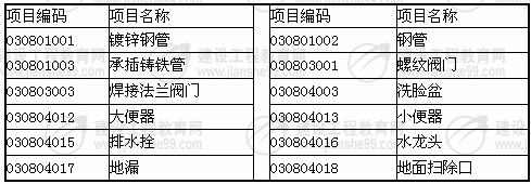 給水管道系統(tǒng)及衛(wèi)生器具有關(guān)分部分項(xiàng)工程量清單項(xiàng)目的統(tǒng)一編碼,見下表: