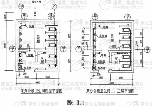 1.某辦公樓衛(wèi)生問給排水系統(tǒng)工程設(shè)計(jì),如圖6.Ⅱ所示。