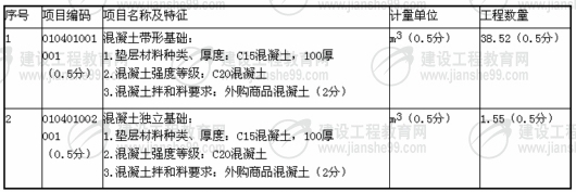 。2)“計(jì)量單位”和“工程數(shù)量”兩項(xiàng)合并得0.5分,錯一處即不得分。