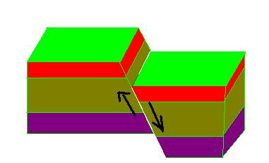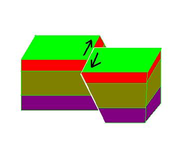 平推斷層:受水平方向剪力作用所造成的斷層。平移斷層分為左移與右移。