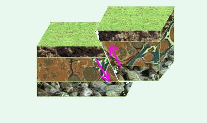 通常斷層面以傾斜的角度發(fā)生,斷層面以上的斷盤為上盤,斷層面以下為下盤。