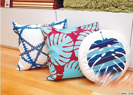 不同圖案的藍(lán)色布藝靠墊,均可帶出不同的感覺(jué)氣氛。