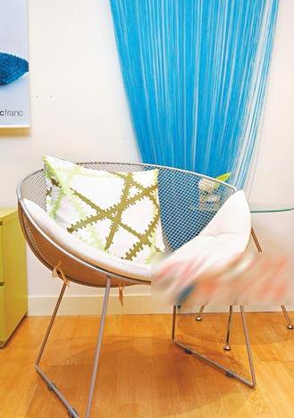 銀色椅也可配襯藍(lán)色圖案靠墊,散發(fā)清新悠閑的感覺(jué)。