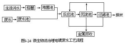 。3)工藝流程微生物治理電鍍廢水工藝流程見圖9-24。