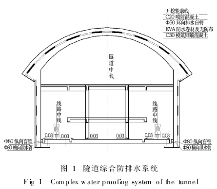 大坪隧道綜合防排水系統(tǒng)按"以排為主、防、排、堵相結合"的原則進行設計如圖1。