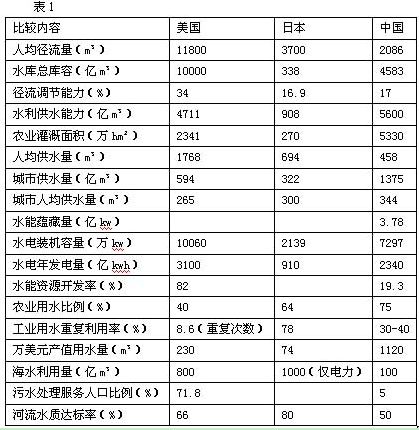 為了解我國水利建設發(fā)展的水平,我們選擇一些重要指標與發(fā)達國家進行比較(表1),我們可以得到以下一些認識: