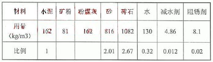(1)原材料的選用。根據(jù)《杭州灣跨海大橋?qū)S眉夹g規(guī)范》要求,我們通過參考有關資料、向?qū)<易稍儭υ摰貐^(qū)各種原材料的產(chǎn)量、技術指標調(diào)研以及對初步擬定配合比試配,初步確定了采用的原材料。本工程采用甲供安徽寧國海螺牌P.Ⅱ42.5水泥,粗集料采用寧波北侖青峙石場5~25mm連續(xù)級配碎石,細集料采用閩江中砂,通過混凝土的試拌和對混凝土性能進行比對,減水劑采用上海麥斯特(羧酸類減水劑,減水率≥25%),阻銹劑采用山西凱翕克生產(chǎn)的亞硝酸鈣,礦粉采用上海寶田和安徽朱家橋S95礦粉,粉煤灰采用鎮(zhèn)江諫壁電廠一級粉煤灰。
