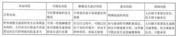 根據(jù)風(fēng)險的定義,可以將道路交通安全風(fēng)險理解為客觀存在的,由干各種原因(人的不安全行為、物的不安全狀態(tài)、個人因素和環(huán)境因素)導(dǎo)致人們在進行道路交通活動中最終損失的不確定性。根據(jù)不確定性的程度,將道路交通安全風(fēng)險分成以下幾類(見表3)。