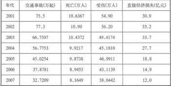 表12001——2007年全國道路交通事故四項統(tǒng)計數(shù)據(jù)