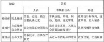 在20世紀(jì)70年代,美國人WILLIAMHADDON提出了著名的“哈頓矩陣模型”,闡述了在機動車發(fā)生碰撞前、碰撞時和碰撞后的三個階段中互相作用的三