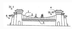 預(yù)應(yīng)力懸索設(shè)計(jì)的主懸索1根SNS/D-7×241,吊桿索54根SNS/D-5×37,水平拉索20根SNS/D-5×37,懸索及配套冷鑄錨具由上海浦江纜索有限公司生產(chǎn)。