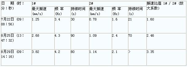 表3-2煙囪定向傾倒觸地振動監(jiān)測成果表