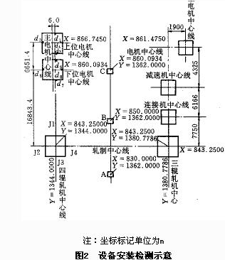 以濟(jì)鋼(馬)鋼板有限公司四輥軋機(jī)、四輥軋機(jī)橫移拉出換輥裝置、四輥軋機(jī)主電機(jī)上位電機(jī),下位電機(jī)的安裝檢測為例(見圖2)。