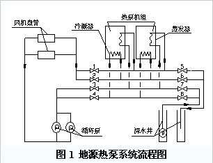 該系統(tǒng)的地源熱泵機(jī)組本身即具有能量自動(dòng)調(diào)節(jié)功能,可以在不改變制熱工況的前提下,改變壓縮機(jī)的輸氣量進(jìn)而改變供液量來調(diào)節(jié)冷凝器的產(chǎn)熱量。同時(shí),這又為水系統(tǒng)的變流量運(yùn)行提供了基本條件。