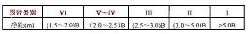 《公路隧道設(shè)計規(guī)范》(以下簡稱《隧規(guī)》要求:“高速公路、一級公路一般應(yīng)設(shè)計為上、下行分離的兩座獨立的隧道。”兩座獨立的隧道,洞內(nèi)防排水條件好,設(shè)計、施工經(jīng)驗較成熟。但項目總投資大,因為:山區(qū)、丘陵區(qū)是隧道密布地區(qū)。由于地面起伏大、溝谷狹窄,線位受山河約束。在困難的地形條件下,將上、下行設(shè)計為分離的兩座獨立的隧道,將明顯增加工程投資!端硪(guī)》規(guī)定兩隧道的最少凈距如下表: