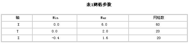 1.根據(jù)實(shí)物,建立模型長(zhǎng)×寬×高=6m×2m×2m,取網(wǎng)格參數(shù)見表1。
