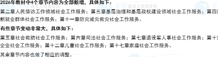 2026年初級社會工作實務(wù)考試教材(社會出版社)已下發(fā),這一版教材變動內(nèi)容有哪些呢?根據(jù)網(wǎng)校的細(xì)致對比,2026年教材相較于2025年教材整體變動非常大。