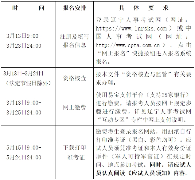 擬在遼寧省參加考試(不含大連市考生)的報(bào)考人員,完成注冊(cè)后可在規(guī)定時(shí)限內(nèi)進(jìn)行考試報(bào)名。