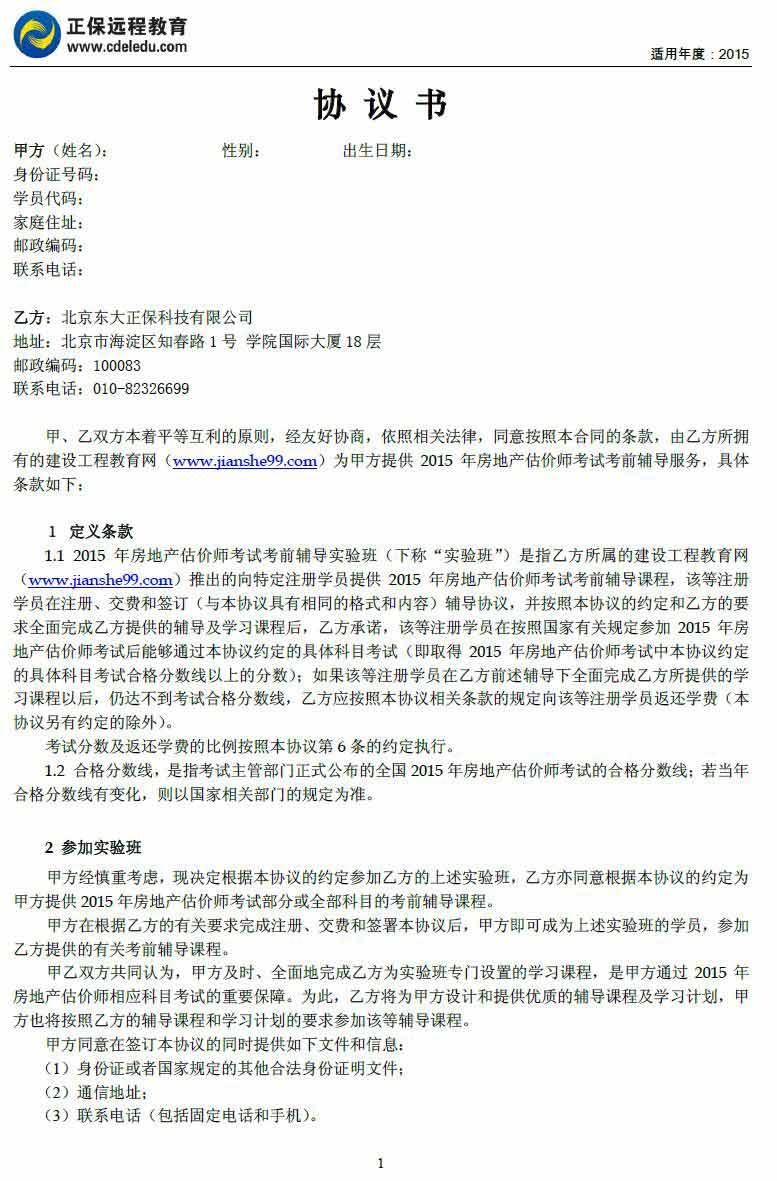 房地產(chǎn)估價師“實驗班”協(xié)議書