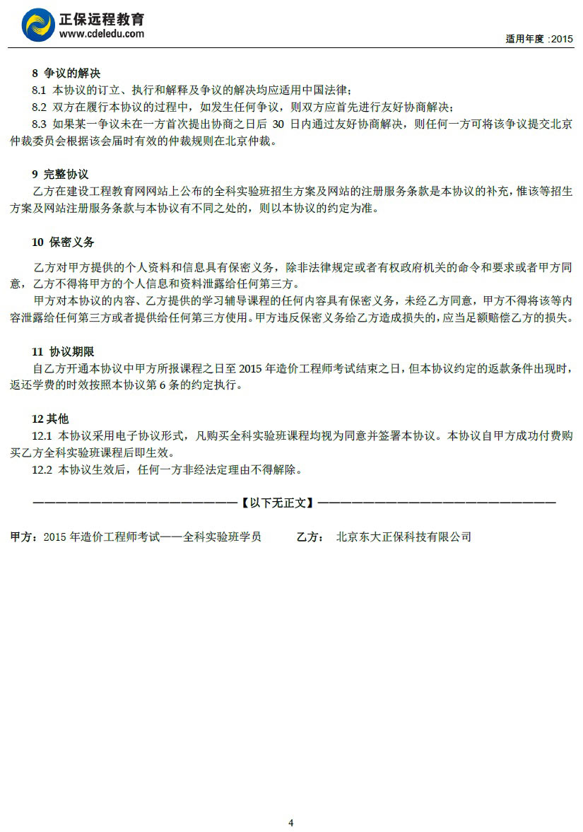 造價工程師“全科實驗班”協(xié)議書