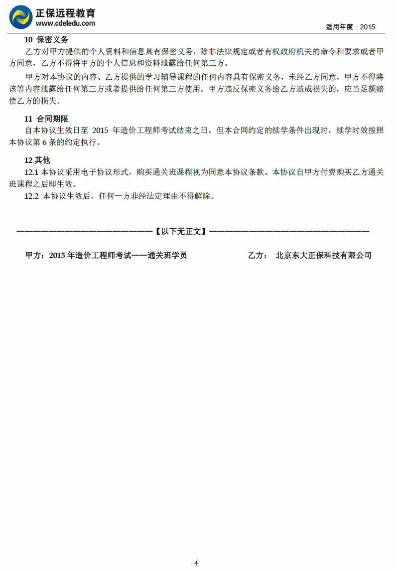 造價工程師“通關(guān)班”協(xié)議書