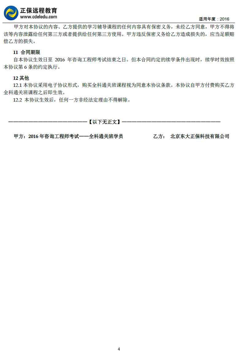 咨詢工程師“全科通關(guān)班”協(xié)議書