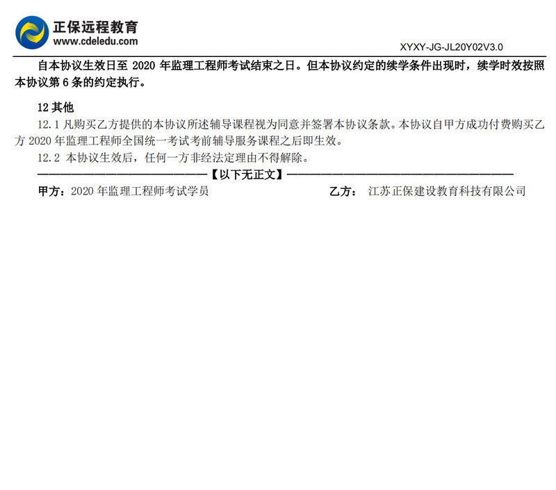 2020年監(jiān)理工程師協(xié)議書
