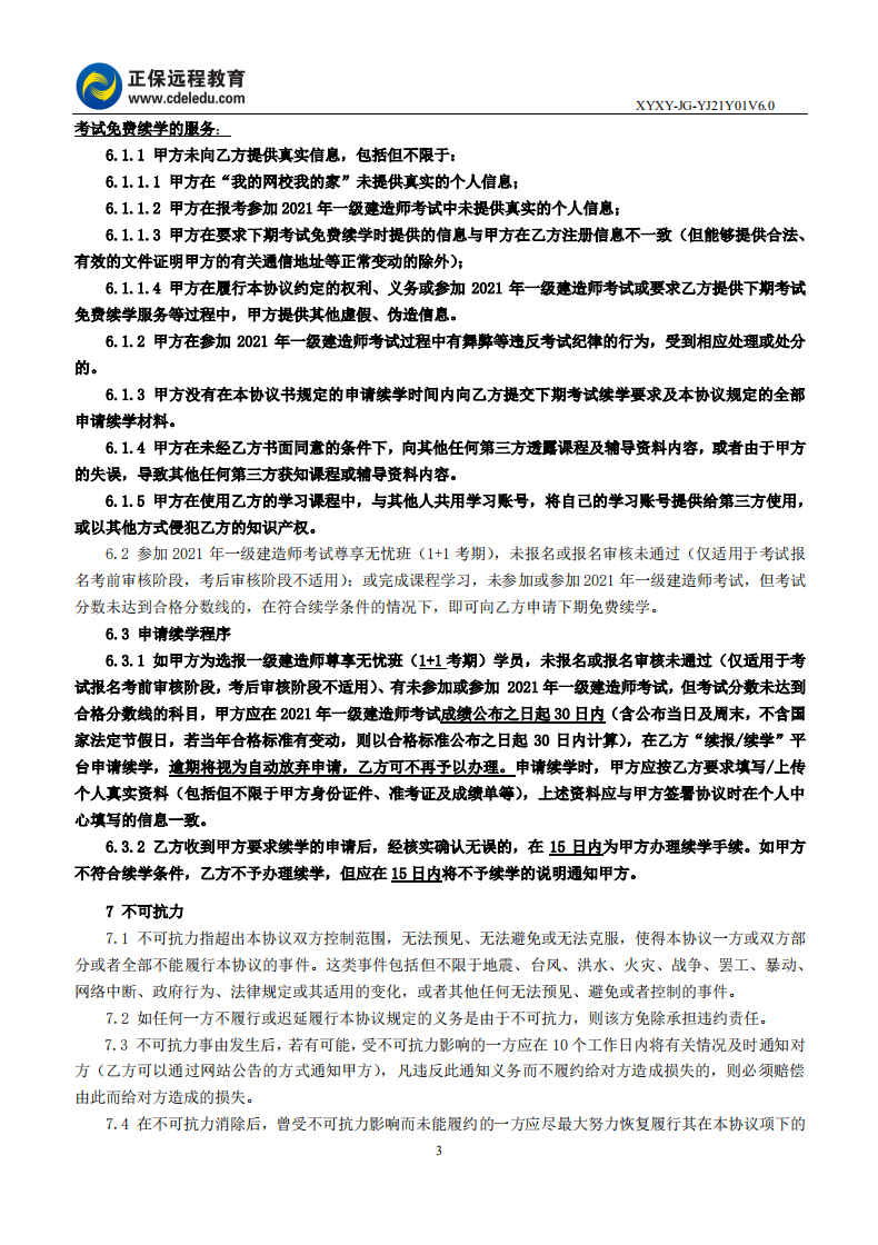 2021年一級(jí)建造師尊享無(wú)憂班續(xù)學(xué)協(xié)議書